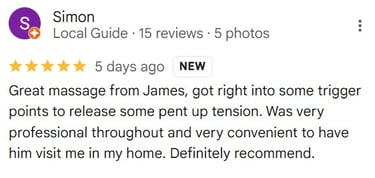 My mission is to bring the benefits of massage to more people. So I bring my personalised massage treatments to you, in the comfort of your home, tailored to your needs, allowing you to relax, recover and recharge, without the hassle of leaving the house.